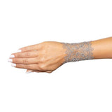 Our cult classic. The Sappho looks like a stiff metal, but it's as soft as a second skin. Every lace cuff in our collection closes with a magnetic clasp. You won't believe it's not metal.